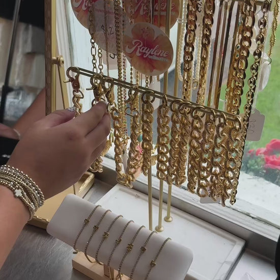 You have the option of a 12 inch Double Clasp Chain or a 5 inch Dangle Chain and a variety of charms to choose from!